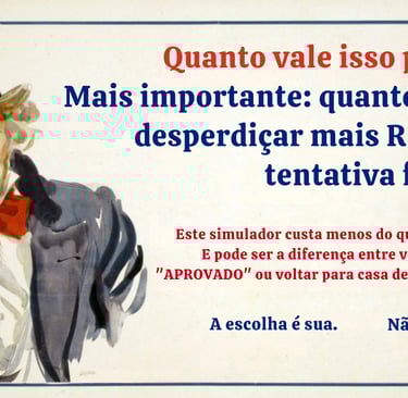 Garantia Condicional vitalícia: Você não corre nenhum risco. Acesse o simulador completo, faça sua análise personalizada, treine as respostas. Se por qualquer motivo você achar que não valeu cada centavo, devolvemos 100% do seu dinheiro em até 24 horas.